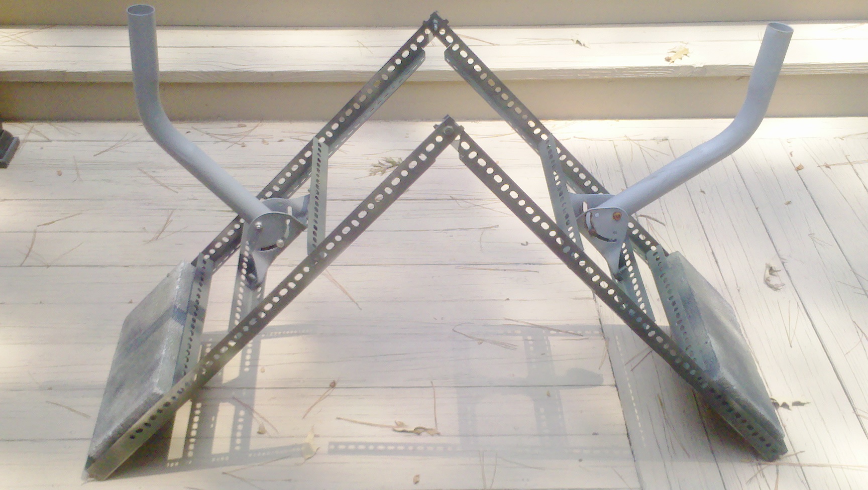 The malleable tripod legs are designed to be bent to match the pitch of the roof.