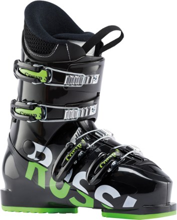 With a four buckle design a 50 flex rating and sharp good looks the rossignol comp j4 ski boots are the perfect complement to your kid s skiing kit.