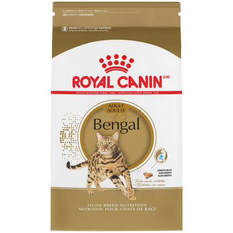 Royal canin feline breed nutrition bengal dry cat food the benefits this specially designed y shaped kibble adapted to the bengal cat s jaw encourages chewing to help support oral hygiene.